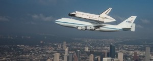 Space Shuttle Endeavour is ferried by NASA’s Shuttle Carrier Aircraft (SCA) over Houston, Texas on September 19, 2012. NASA pilots Jeff Moultrie and Bill Rieke are at the controls of the Shuttle Carrier Aircraft. Photo taken by NASA photographer Sheri Locke in the backseat of a NASA T-38 chase plane with NASA pilot Thomas E. Parent at the controls.